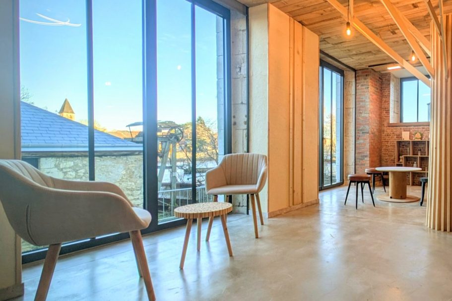 Plusieurs espaces conviviaux sont à votre disposition, pour vous détendre entre deux visios ou réunions et profiter d'une magnifique vue sur la Creuse. Vous pouvez aussi vous installer en extérieur quand le temps le permet.